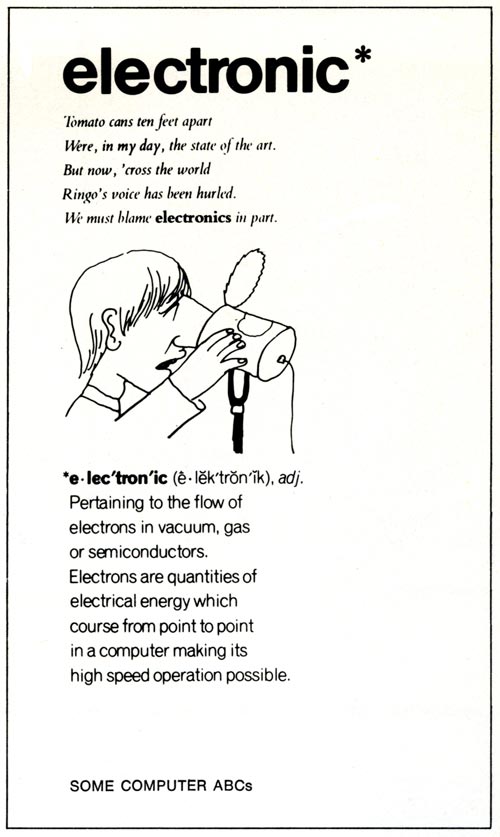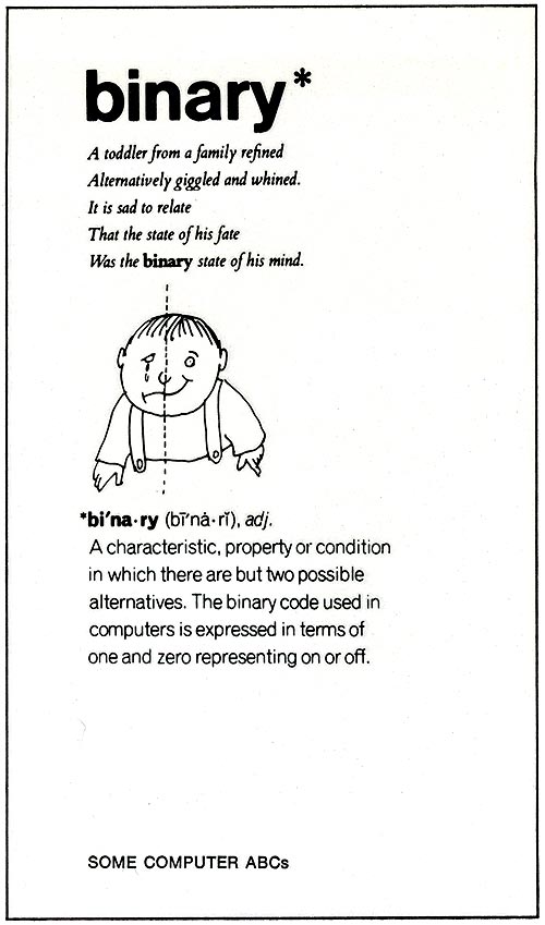 In conjunction with my post over at the Nonist proper about the poster art of Tomi Ungerer I would like to offer some related content here, namely some pieces Mr. Ungerer created for an exhibition at IBM’s New York City headquarters. The exhibition, held in 1966, was called Some Computer ABC’s. See below.