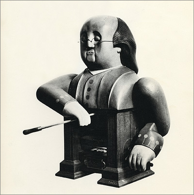 Ben Franklin, brass, polychrome wood, 25” high. ben Franklin. who operates his own press, was commissioned by Curtis publishing Corporation.