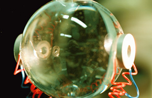 THE make-up is applied normally, but a small control unit in a handbag sends out electronic pulses that change the colours.