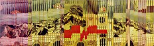 she employs the kind of art theory i can get behind, which is to say theory that is implicit in the works physical creation not just the explanation of its meaning. interesting stuff and i really like the result. below are a few details from the various paintings. click each for larger versions.