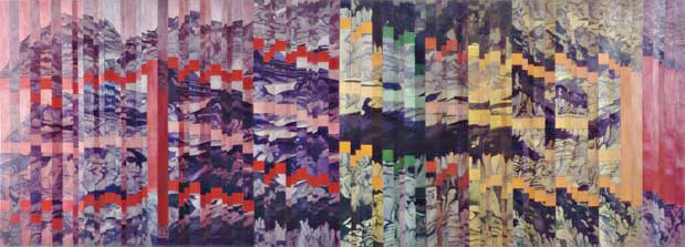 quote: Since 1976 my paintings have been formulated through a set of visual equivalents employed effectively to “translate” a composition written in the aural “language” of music into a visual “language”. The musical vocabulary used by the composer is put into a new vocabulary, one that uses visual images instead of sounds. However, the original structure of the piece is retained along with the meaning. Not only do I, as a painter, function in a way similar to an orchestra conductor, but I am also the creator of the visual language. My activity could be described as a re-orchestration, followed by a visual performance. The actual act of painting produces a work which expresses feeling—mine and the composer’s—but is structured by a mathematical system.