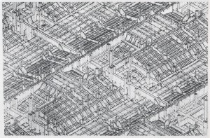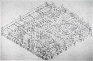 picked up an exhibition catalog at strand yesterday for a show held at the guggenheim in 1984 called the opaque civilization by artist will insley. i’ve never heard of will insley and a quick internet search turned up very little other than the fact he was born in 1929, studied architecture, and taught at the school of visual arts at some point. image-wise there is a single paltry piece to be seen. the guggenheim show evidently represented a career long fascination with abstract architecture the totality of which insley termed the opaque civilization. in the catalog he explains that theory is a major element in the process and understanding of his work. said theories, will be willfully withheld here, however, because to be totally frank, i can’t figure out exactly what they are. see below for some pieces which make up the opaque civilization.