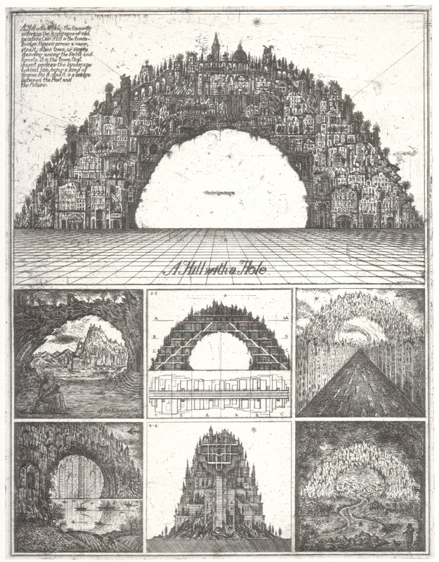 picked up a book yesterday from the princeton architectural press collecting some of the works by the russian architectural duo of alexander brodsky and ilya utkin and i’m very happy i did. got it for a song and it’s a really gorgeous book. or rather the 28 plates are. they’re an interesting duo, a bit like a visual rosencrantz and guildernstern in that they create etchings together and their styles are indistinguishable within the whole. the buildings and spaces they create are wildly poetic in no small part because they are by and large unbuildable. these are paper architects you see.