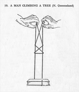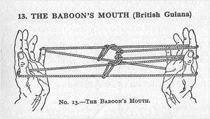 it’s an age old story: you find yourself in some thick rainforest a million miles from your cozy suburb. the call of nature strikes and while taking a crap behind a tree (wiping with some poisonous leaf of course) your surprised to be surrounded by naked blow-gun toting natives! in this all too common scenario the sensible thing is to make friends, quick-like. according to this little book i’ve got, originally published in 1934, titled string games for beginners representational pictures made with a length of string are one of the most common bits of cultural overlap going and for this reason are one of the best possible ways of making friends with natives! indeed.
