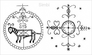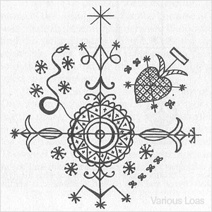 who’d-a-thunk a sub-par wes craven flick from the 80’s would lead me to items of interest? after watching serpent and the rainbow recently i went off in search of voodoo and found veves. quote: In vodou (Voodoo) practice, veves are intricate symbols of the loas (gods), and are used in rituals. each loa has his or her own complex veve, which is traced on the ground with powdered eggshell or cornmeal prior to a ritual. the ability to draw a veve correctly is considered to be the skill of an initiate. the better drawn a veve is the more powerful in invocation it is. see below for a few examples