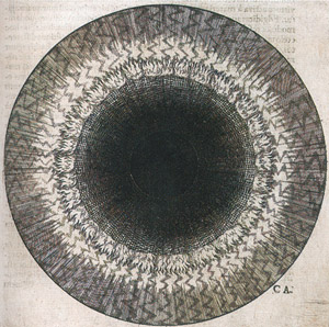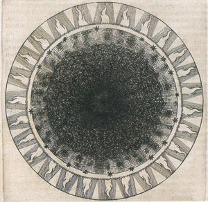 before the theory of the big bang, before the heliocentric model, indeed before science proper, all manner of theory as to the origins of the cosmos jostled for position. as late as the 17th century religious sects, alchemists, and mystics still held enough sway to throw their own theoretical hats into the ring and receive due consideration. religious sects and mystics are still at it i suppose (intelligent design anyone?) but the alchemists are long gone. what follows is the story of creation as put forth in the book utriusque cosmi historia published in 1617, written by one dr. robert fludd.